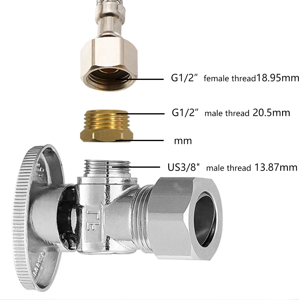 Tecmolog Brass Hose Adapter Connector, G1/2'' Male Thread to US3/8'' Female Thread, US3/8'' Male Thread to G1/2'' Female Thread, SBA025B/SBA025C